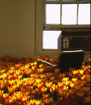 To answer that question artist Anna Schuleit was commissioned to do the impossible. After an initial tour of the facility she was struck not with what she saw but with what she didn’t see: the presence of life and color. While historically a place of healing, the drab interior, worn hallways, and dull paint needed a respectful infusion of hope. With a limited budget and only three months of planning Schuleit and an enormous team of volunteers executed a massive public art installation called Bloom. The concept was simple but absolutely immense in scale. Nearly 28,000 potted flowers would fill almost every square foot of the MMHC including corridors, stairwells, offices and even a swimming pool, all of it brought to life with a sea of blooms.