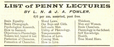 In fact, the magazines are full of wonderful adverts. This list of ‘penny lectures’ isn’t that different from pop psychology and neuroscience today.